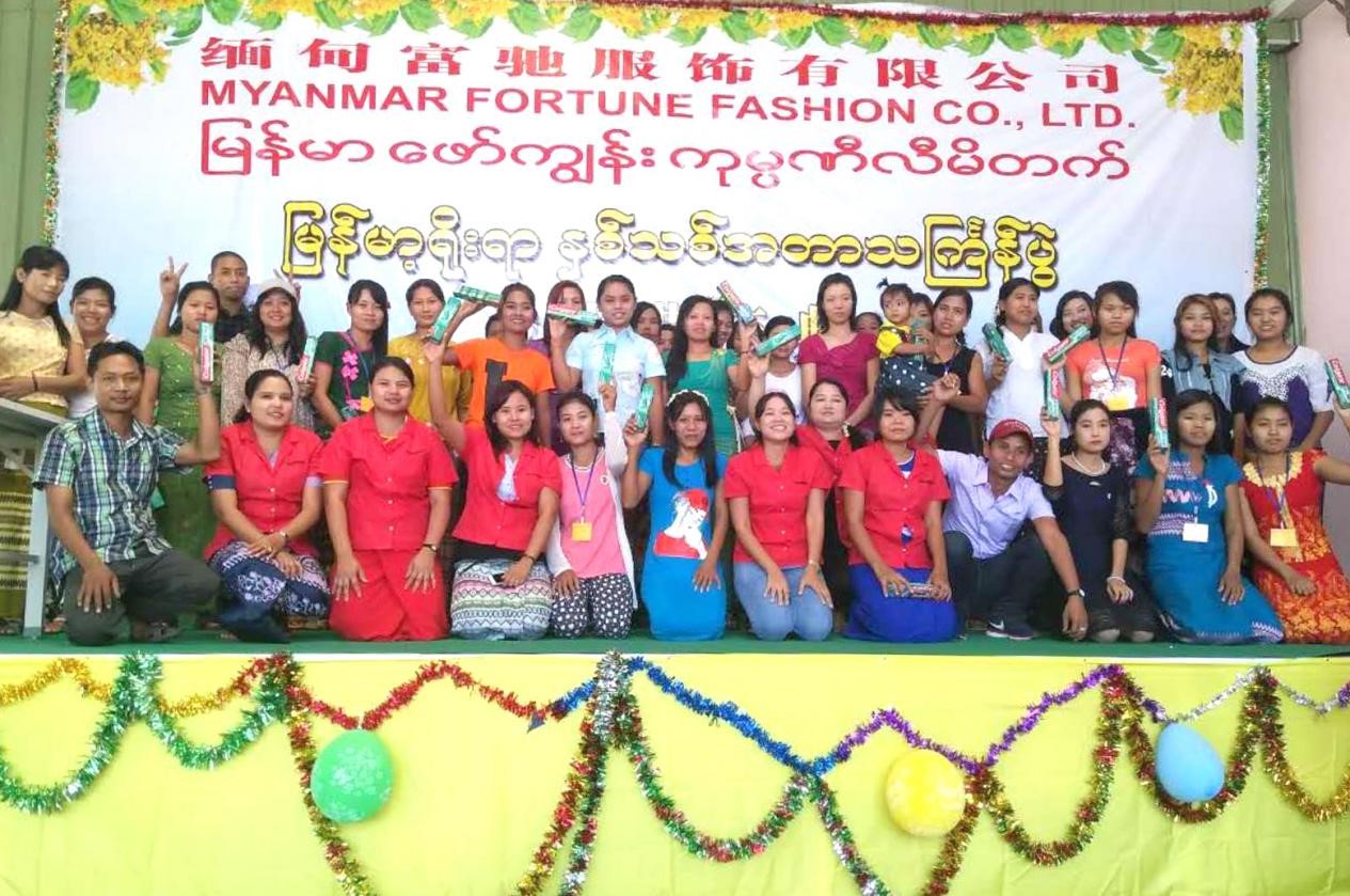 為慶祝即將到來的緬甸新年---潑水節,緬甸公司下屬兩家服裝工廠分別舉行了隆重的慶典活動,中方管理人員與緬籍員工一起載歌載舞,用緬甸人民喜聞樂見的形式共同慶祝新年佳節,感謝全體職工一直以來的辛勤付出!